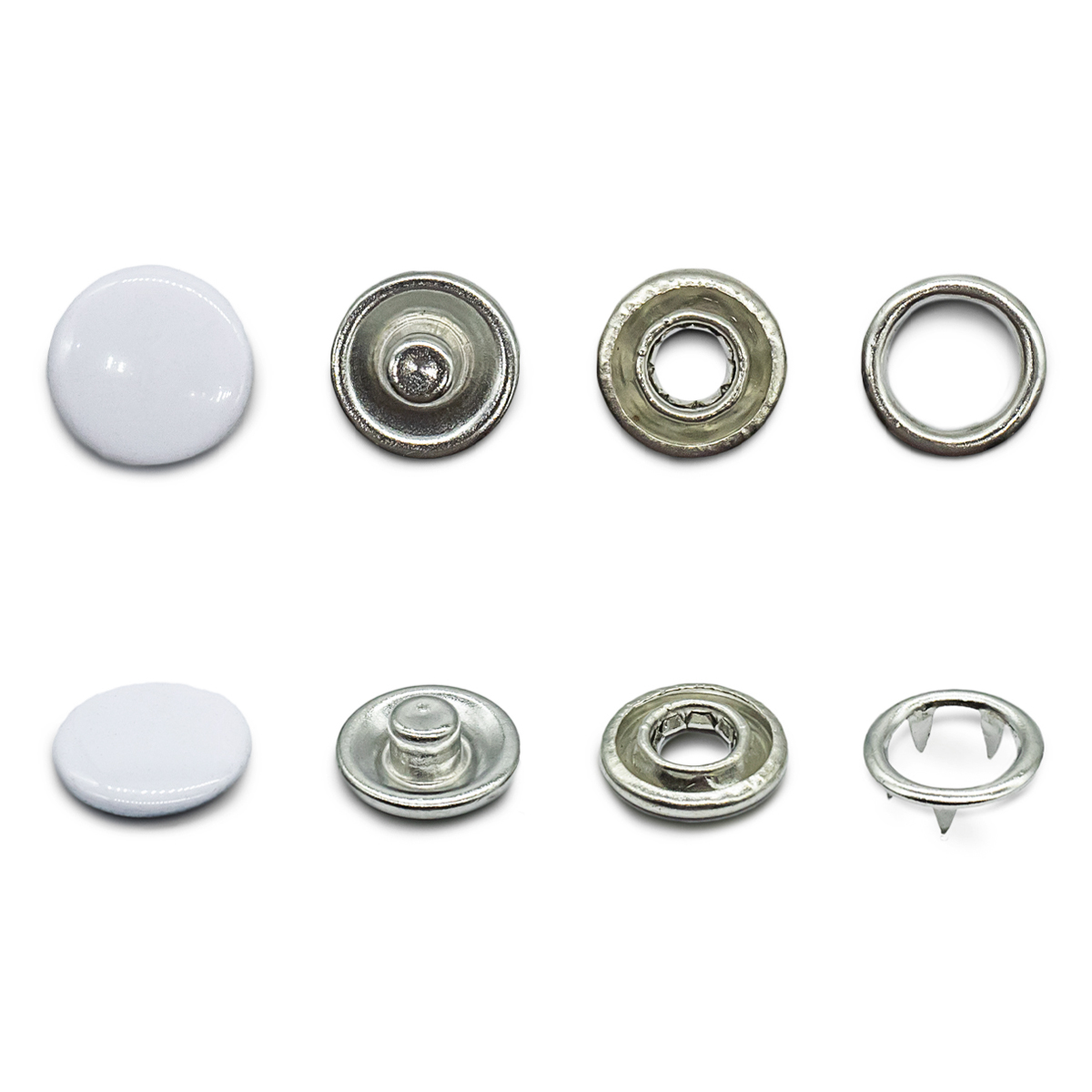 – Изготовлены из металла, с пластиковой 'шляпкой'. Долговечные, прочные и надежные в эксплуатации. Выдерживают многочисленные стирки и не ржавеют.