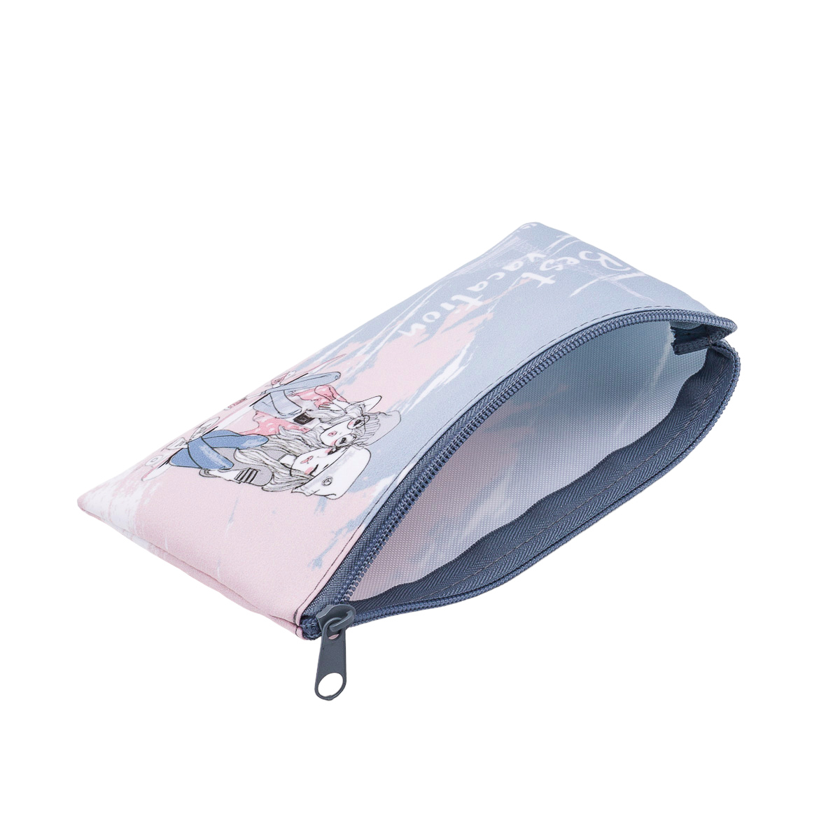 - Косметичка на молнии, в которую можно положить маленькие косметические принадлежности, карандаши, фломастеры или другие мелочи. Она выполнена в том же стиле, что и остальные элементы набора, и станет ярким акцентом в вашей сумочке или рюкзаке.